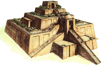 Rond het jaar 2000 v.C. begonnen tempelbouwers met de bouw van een 'verbinding tussen hemel en aarde'. Deze constructies waren grote, pyramidevormige torens waarvan de tempel op het hoogste punt werd gebouwd. De ziggurats werden gebouwd met tichels (Gen. 11:3), (dat zijn plateauvormige stenen) waardoor er een groot aantal terrrasvormige verdiepingen gebouwd kon worden.