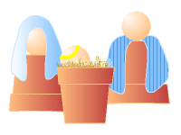 doe het stro of de mos in het andere potje en plaats daarin de derde kraal